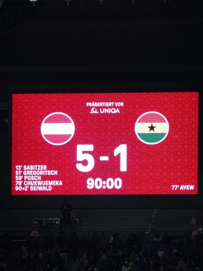 Österreich – Ghana 5:1 (1:0)am 27.03.2026 in WienFreundschaftsspiel40.200 Zuschauer
